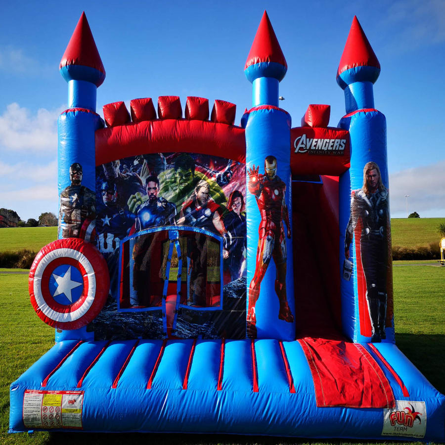 The Avengers Bouncy Castle is the ultimate playtime adventure for young superheroes! Featuring vibrant graphics of Iron Man, Captain America, Thor, and the Hulk, this inflatable wonderland includes a spacious jumping area and an exciting slide. Perfect for parties and special occasions, it promises endless fun and heroic memories for all.